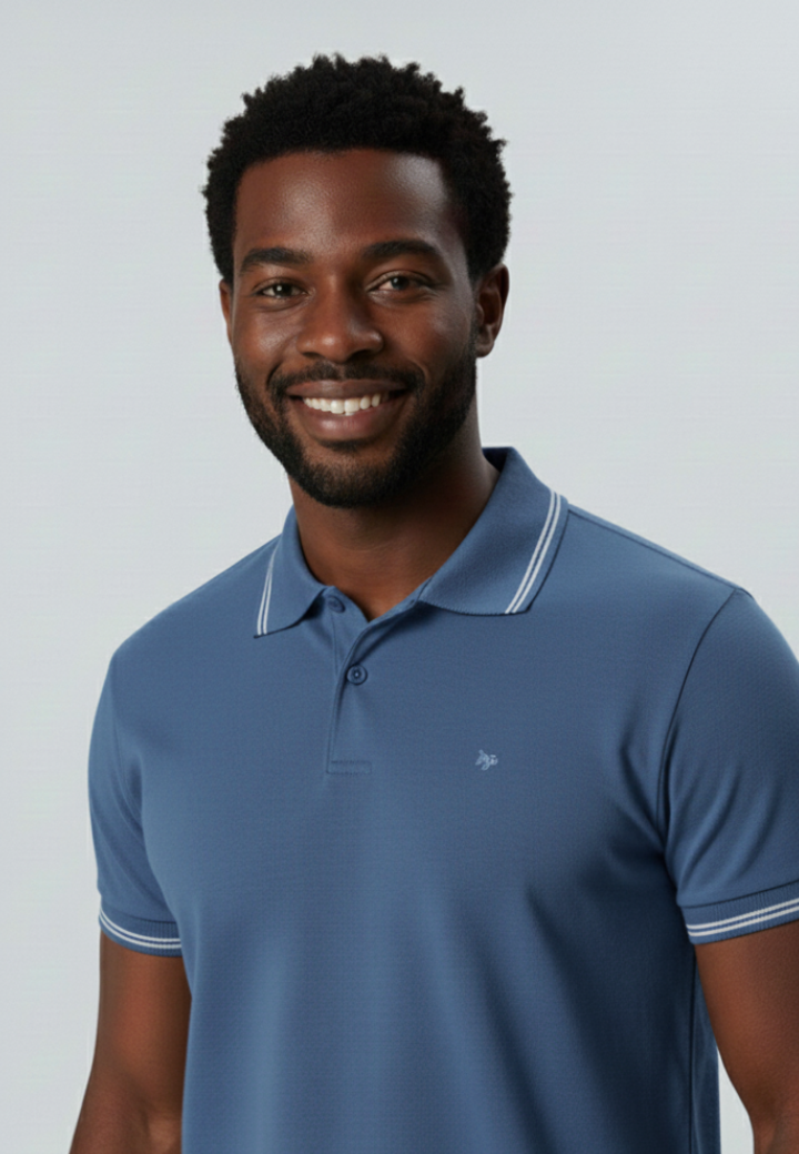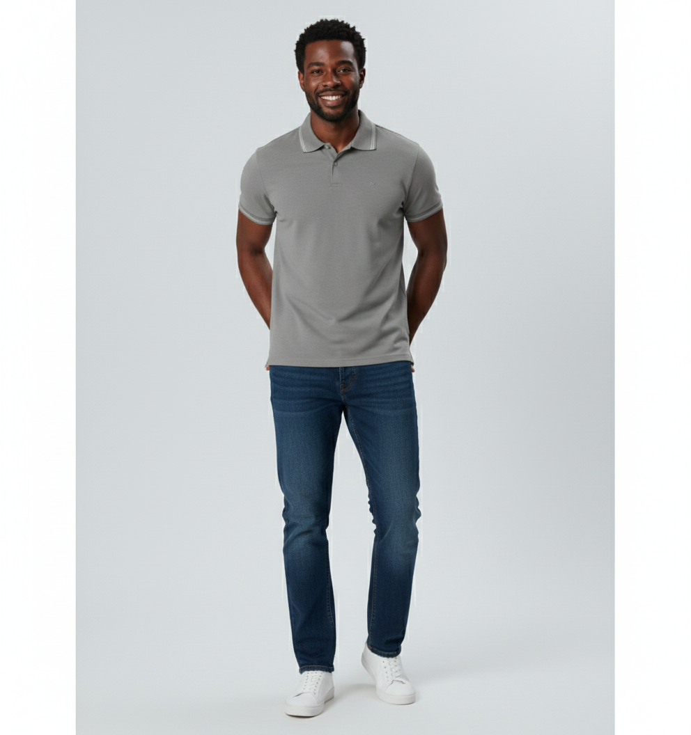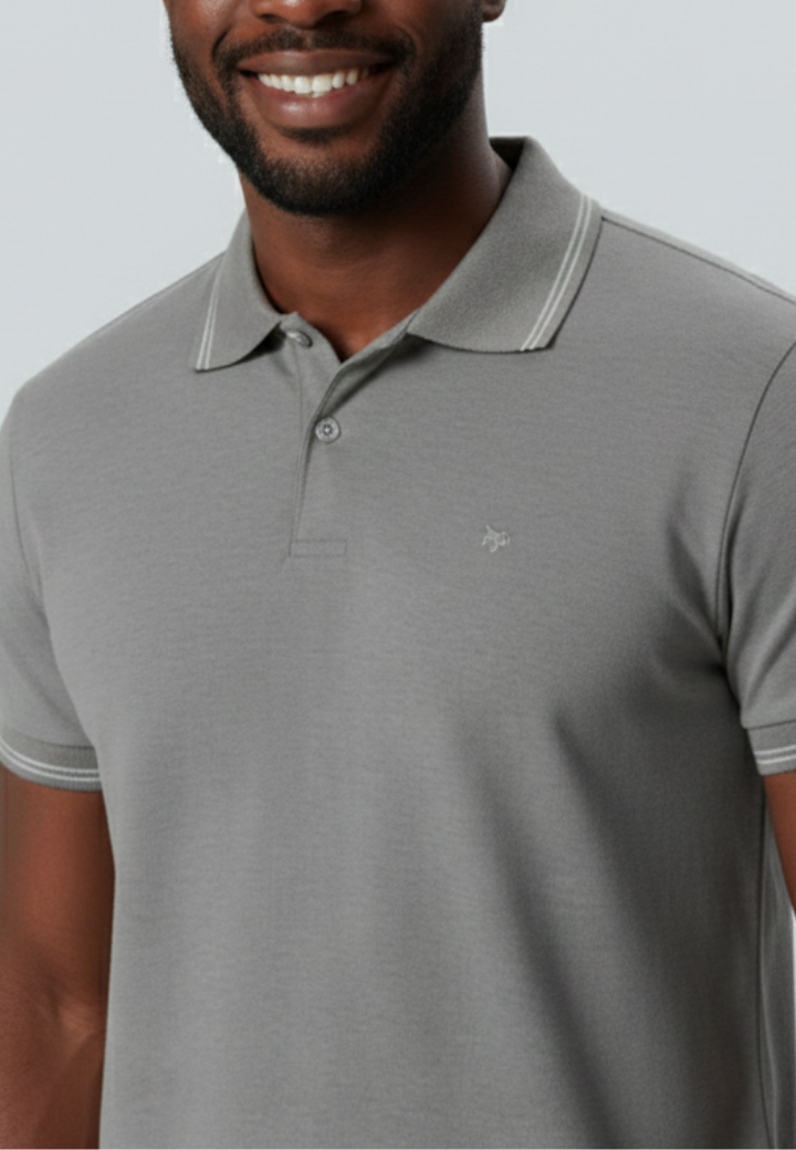 Camiseta masculina polo em meia malha retilínea, com listras modernas e bordado discreto que agrega sofisticação. Confortável e versátil, é ideal para compor looks casuais com estilo e elegância no dia a dia.