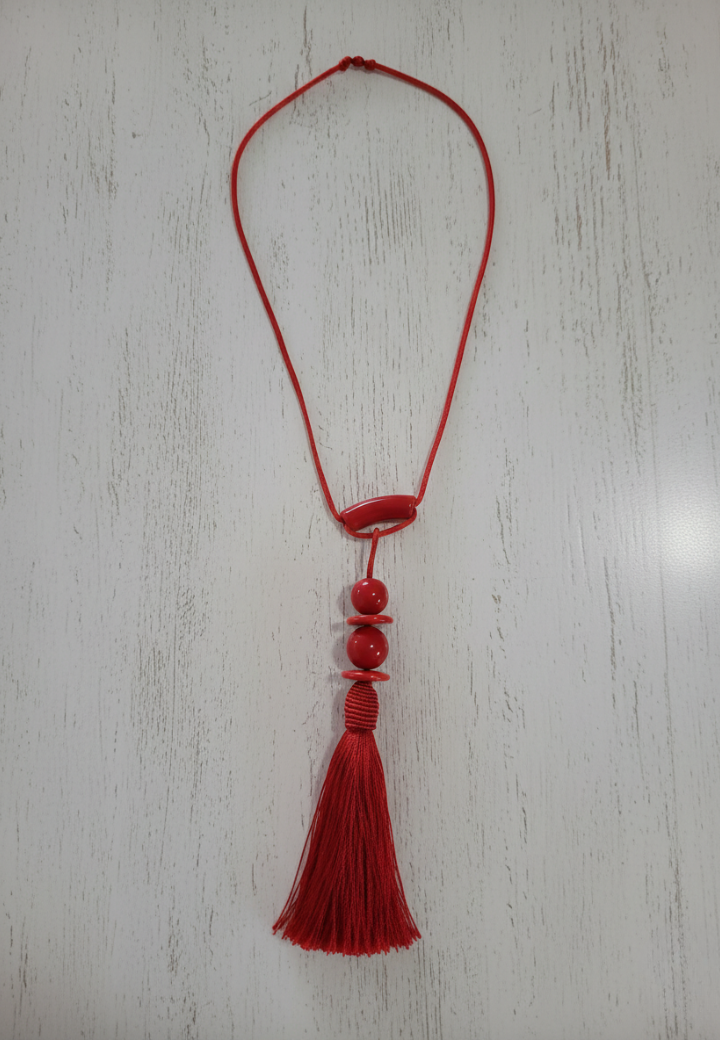 Colar Feminino Vermelho com Penas