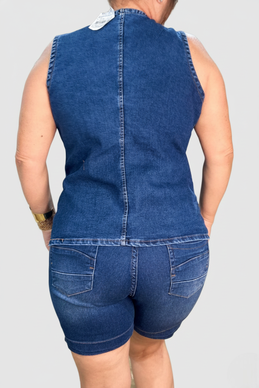 Versátil e cheio de estilo, este colete jeans é perfeito para sobreposições, adicionando um toque moderno e descontraído a qualquer look.