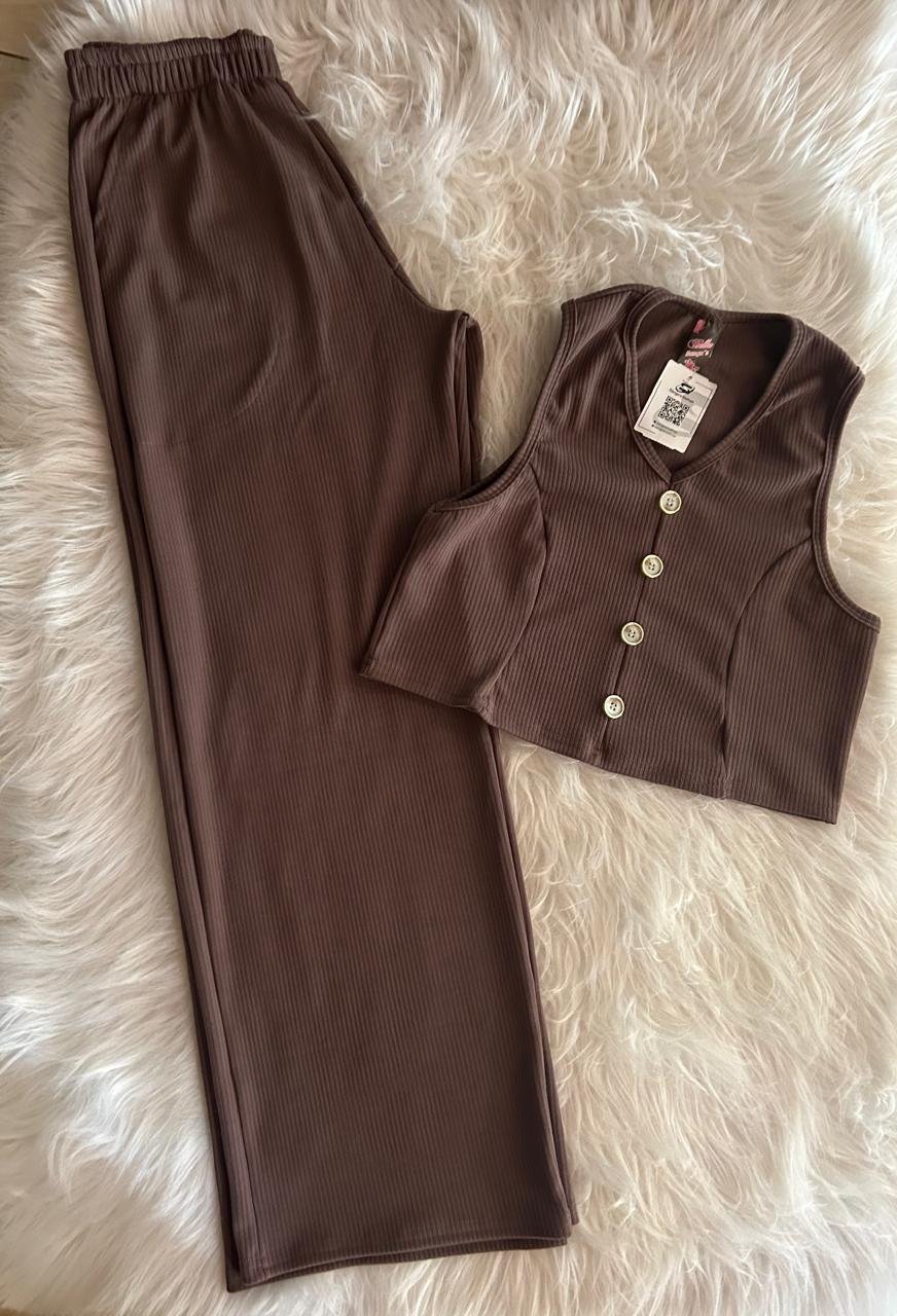 Conjunto Feminino Calça + Blusa Riban Crepe
