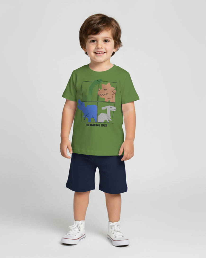 Conjunto infantil masculino composto por camiseta e bermuda em 100% algodão, proporcionando conforto, leveza e toque macio. Ideal para o uso diário, garantindo praticidade e bem-estar para as crianças.🧸✨