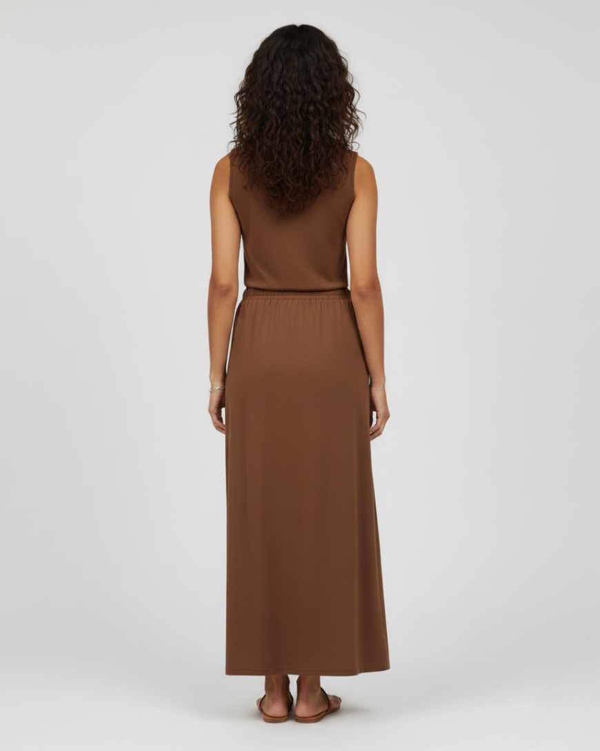 Saia midi feminina Rovitex, confeccionada em Twill Cey, com caimento elegante e toque macio. Possui cós com elástico confortável, com amarração frontal em friso. Versátil e moderna, é perfeita para compor looks sofisticados ou casuais com conforto e estilo.